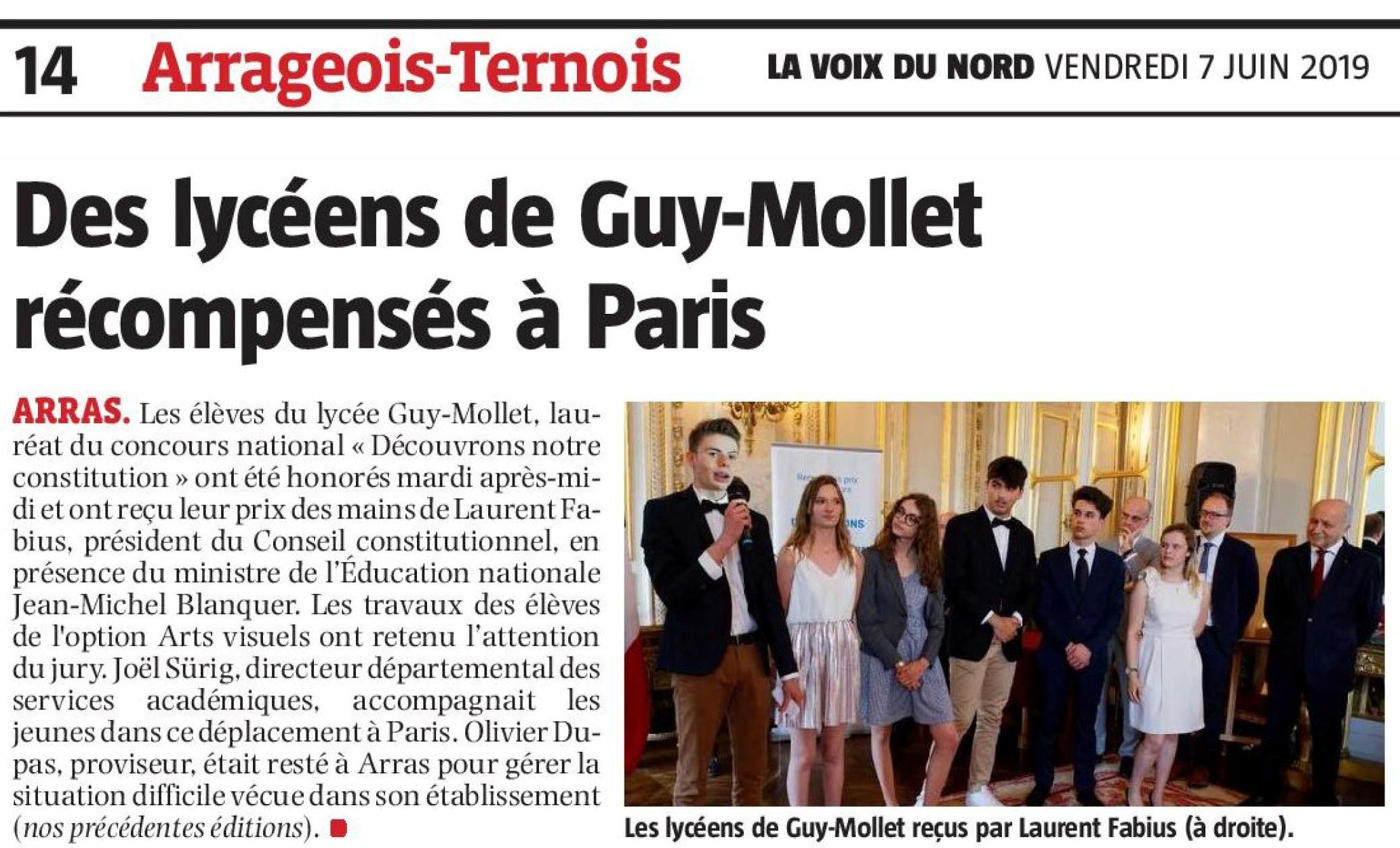 Des lycéens de Guy Mollet récompensés à Paris (4 juin 2019, Conseil Constitutionnel)